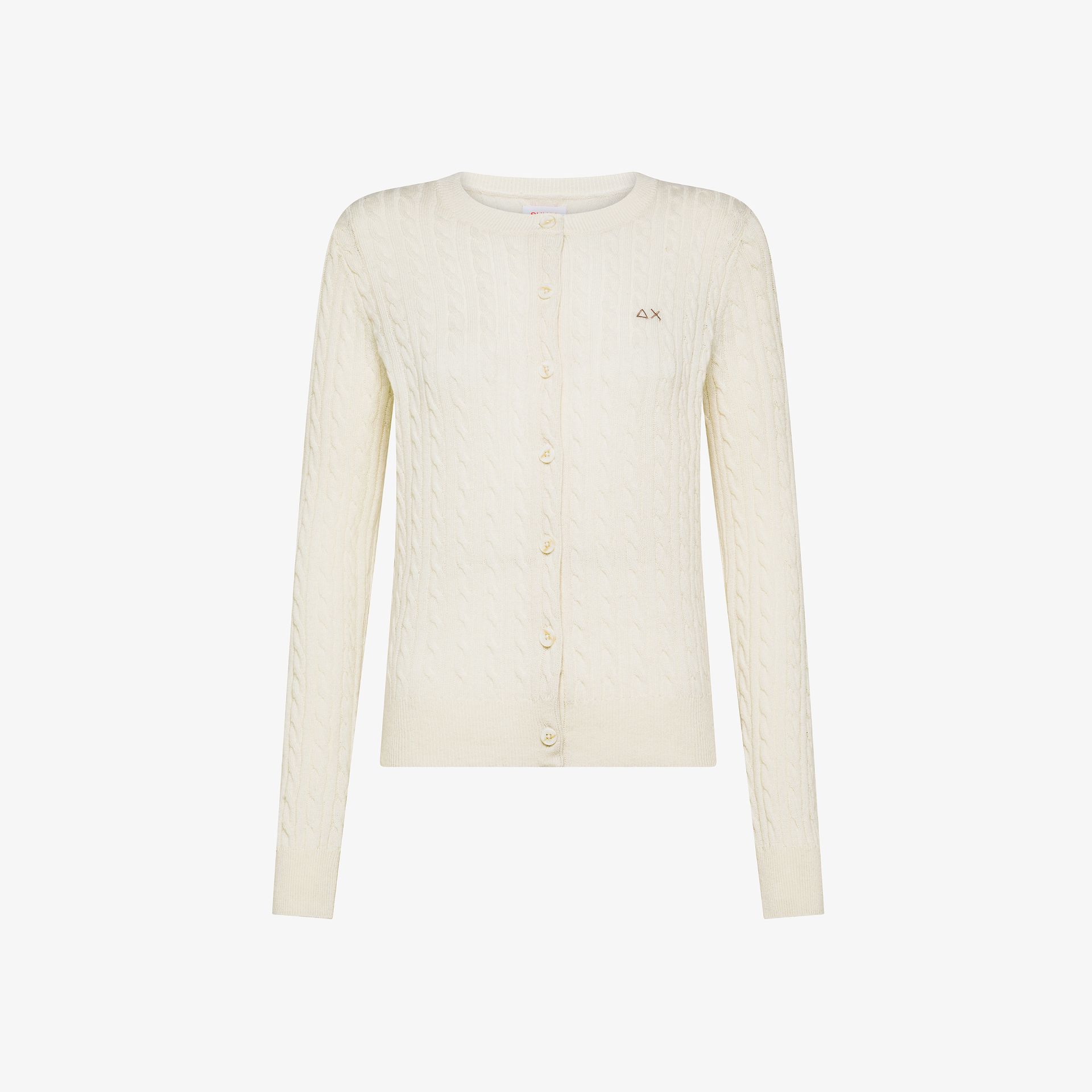 Cardigan in filato di lana e cashmere Lavorazione a trecce Girocollo Maniche lunghe Chiusura con bottoni Logo tono su tono SUN68 ricamato sul petto