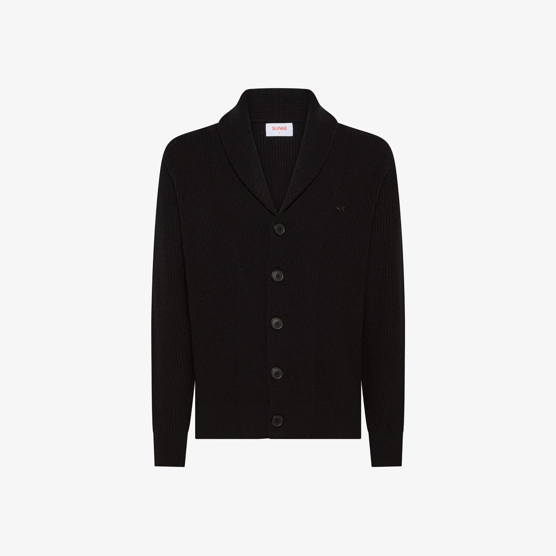 Cardigan in filato di misto lana e cashmere Lavorazione a coste Collo a revers Maniche lunghe Logo SUN68 ricamato sul petto Chiusura con bottoni