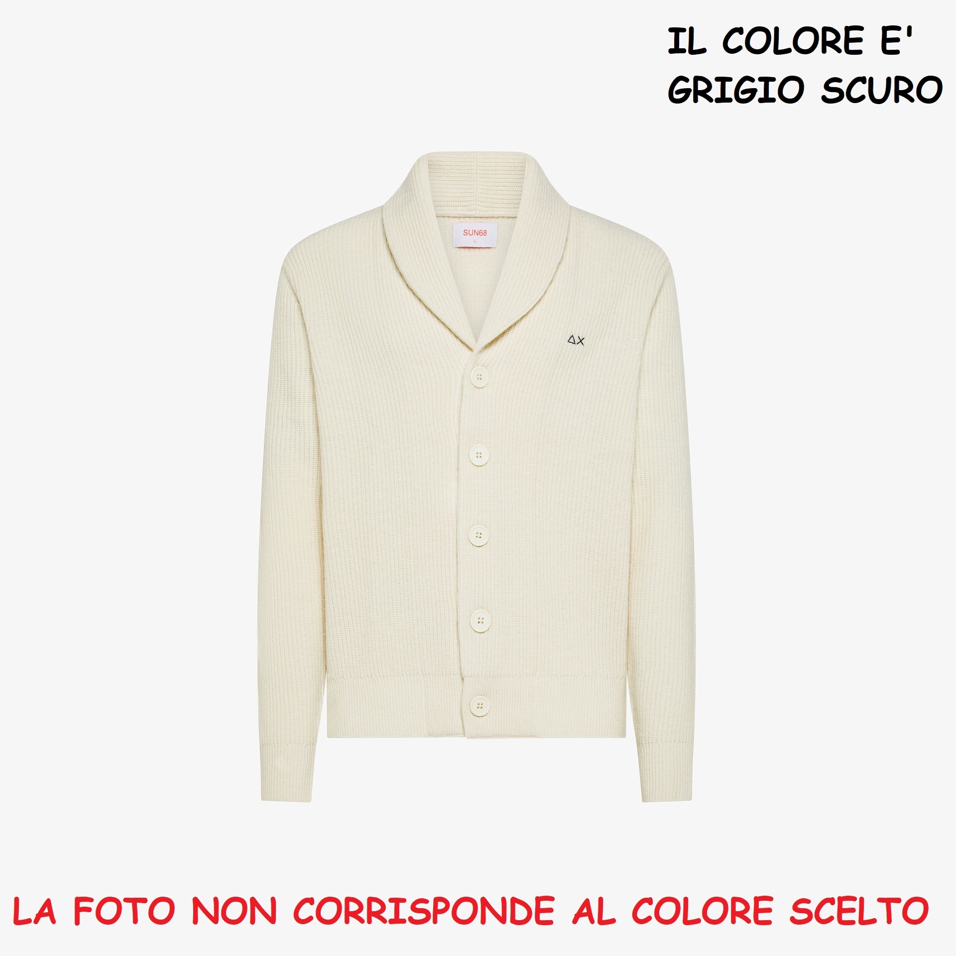 Cardigan in filato di misto lana e cashmere Lavorazione a coste Collo a revers Maniche lunghe Logo SUN68 ricamato sul petto Chiusura con bottoni