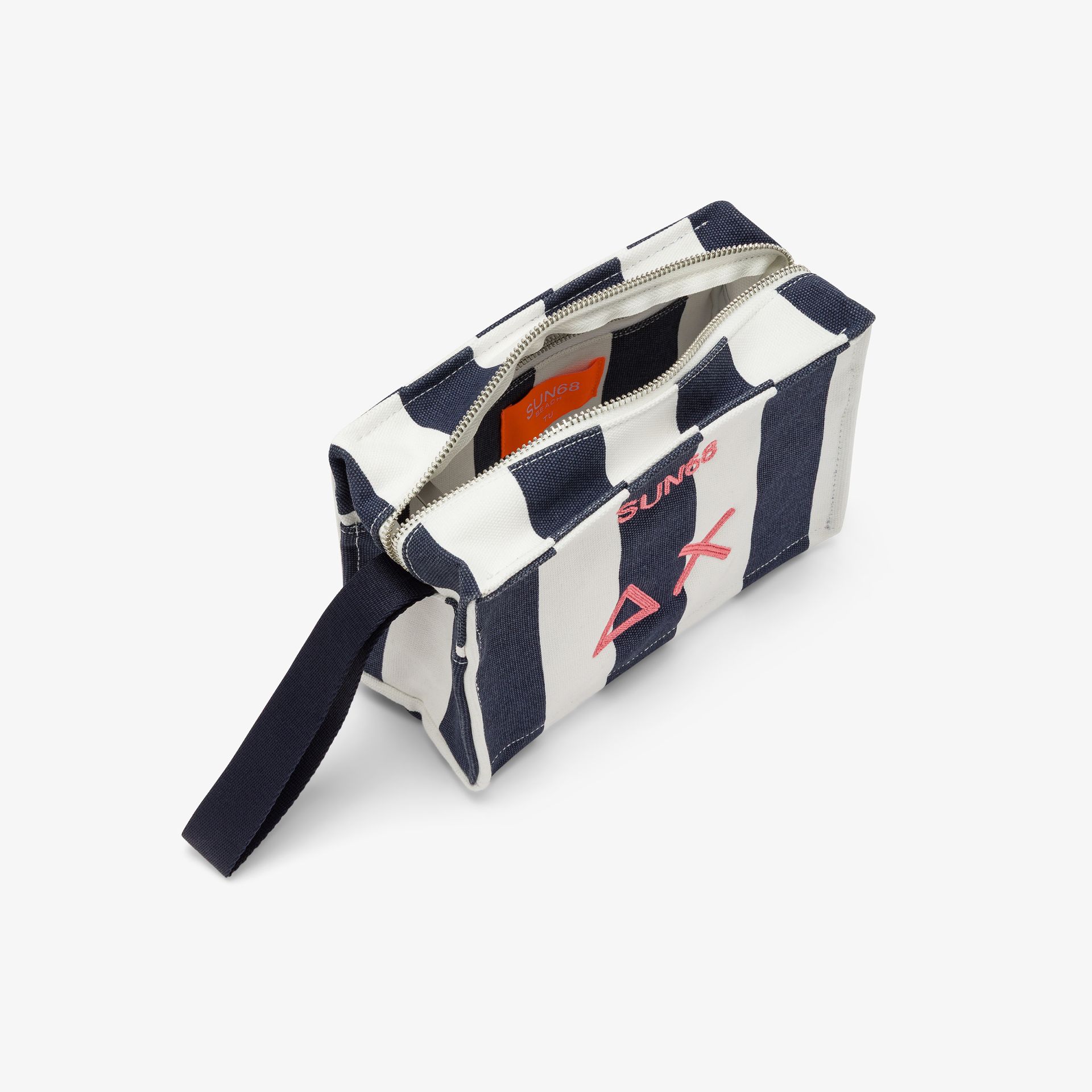 Beauty case in tela di cotone stampato Manico da polso Tasca interna con zip Chiusura con zip Loghi SUN68 ricamati sul davanti