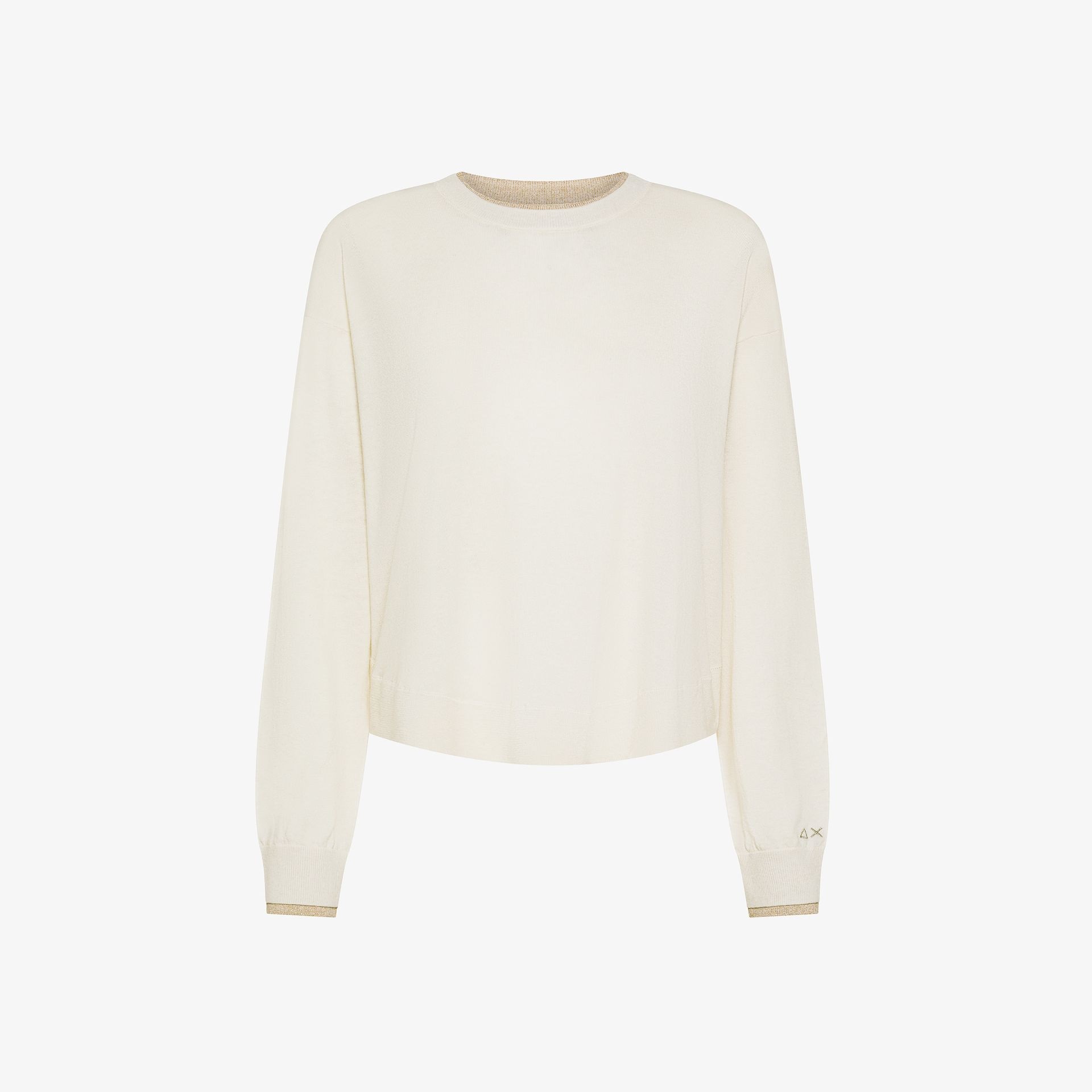 Maglia in filato di lana e cotone Dettagli in lurex Girocollo Maniche lunghe Bordi a costine Logo SUN68 ricamato sul polso