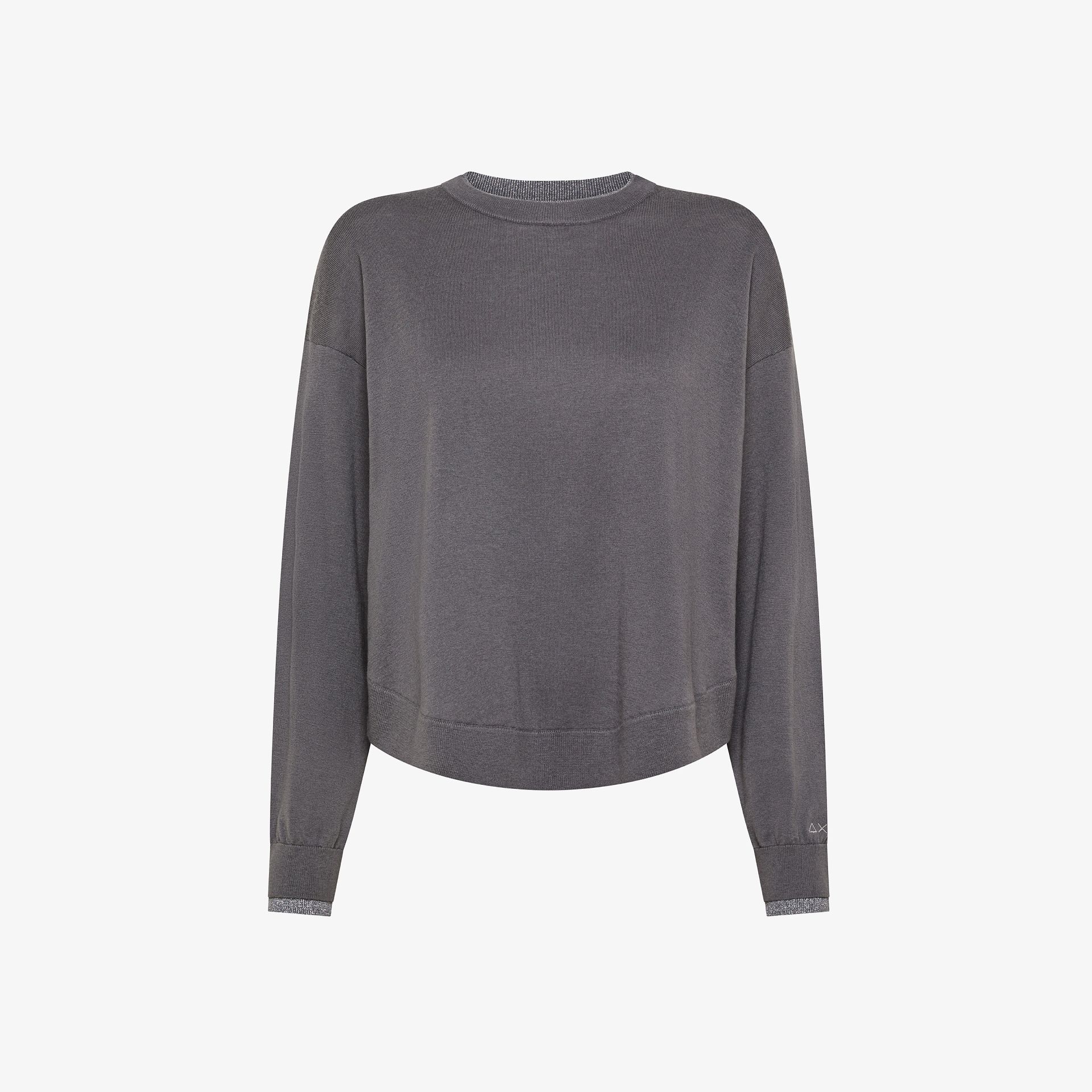 Maglia in filato di lana e cotone Dettagli in lurex Girocollo Maniche lunghe Bordi a costine Logo SUN68 ricamato sul polso