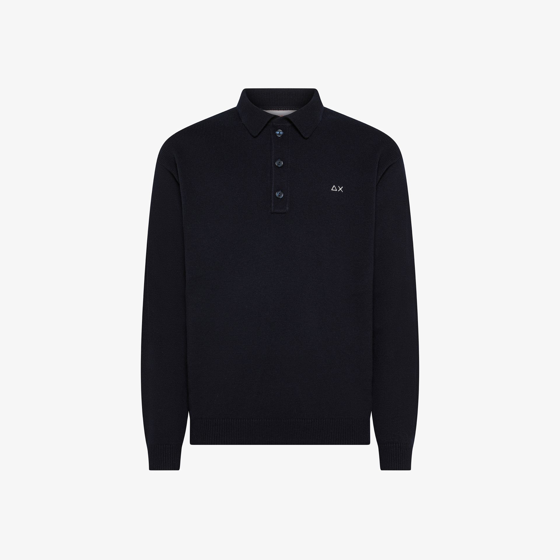Polo in filato di misto lana e cashmere Colletto a costine Maniche lunghe Logo SUN68 ricamato sul petto Chiusura con bottoni