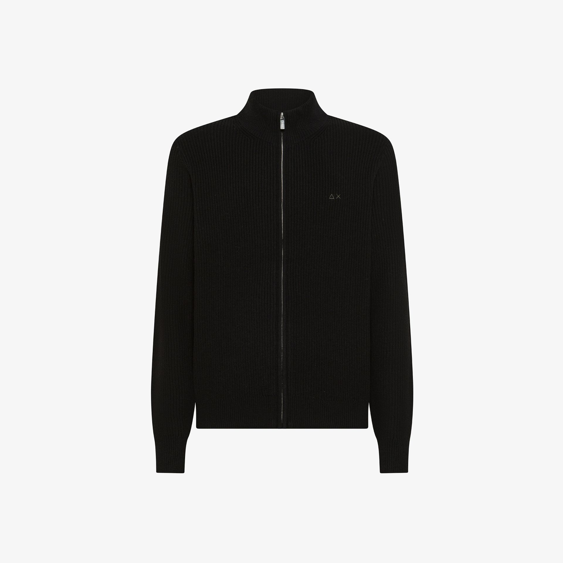 Maglia in filato di misto lana e cashmere Lavorazione a coste Collo alto Maniche lunghe Logo SUN68 ricamato sul petto Chiusura con zip