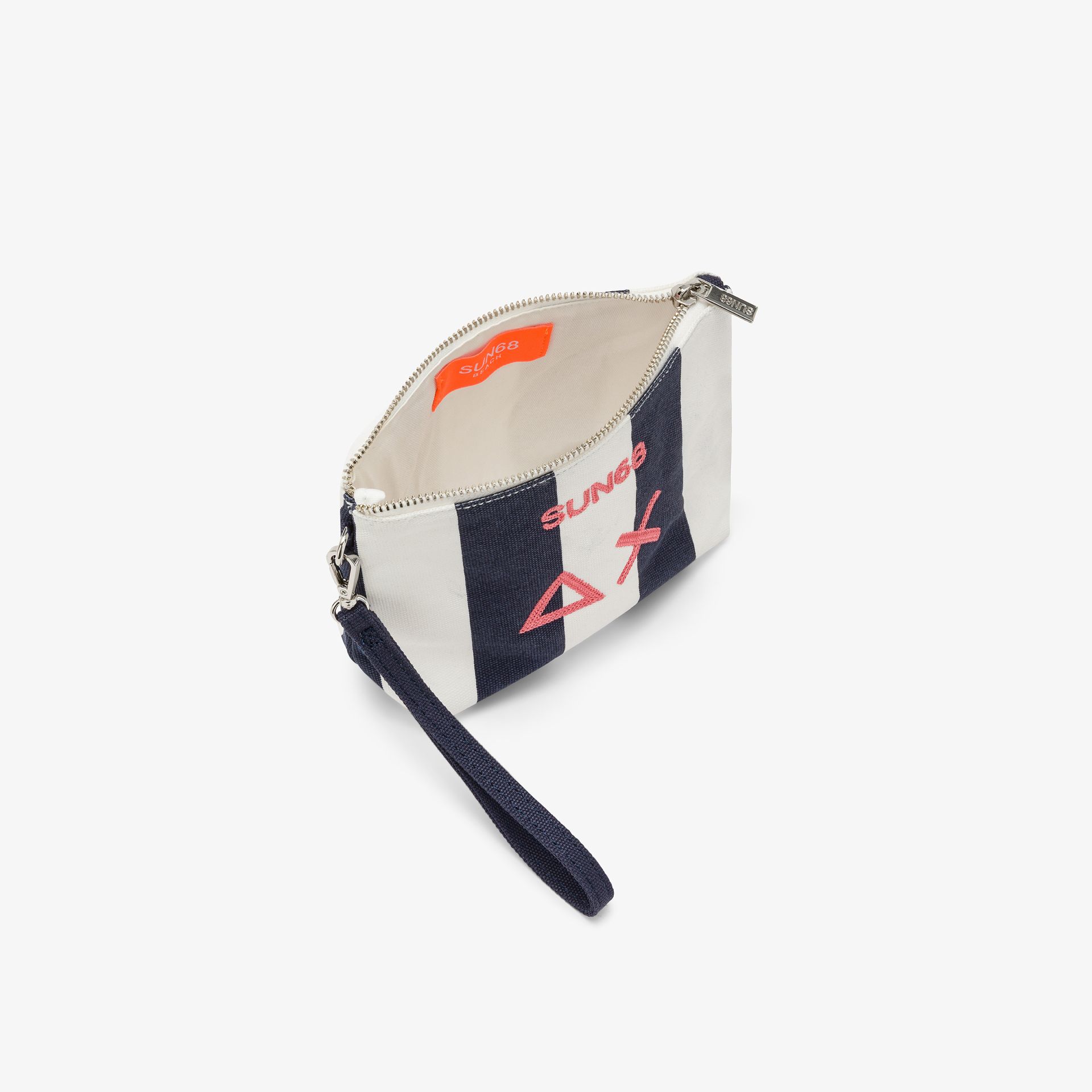 Pouch in tela di cotone stampato Manico da polso rimovibile Chiusura con zip Loghi SUN68 ricamati sul davanti