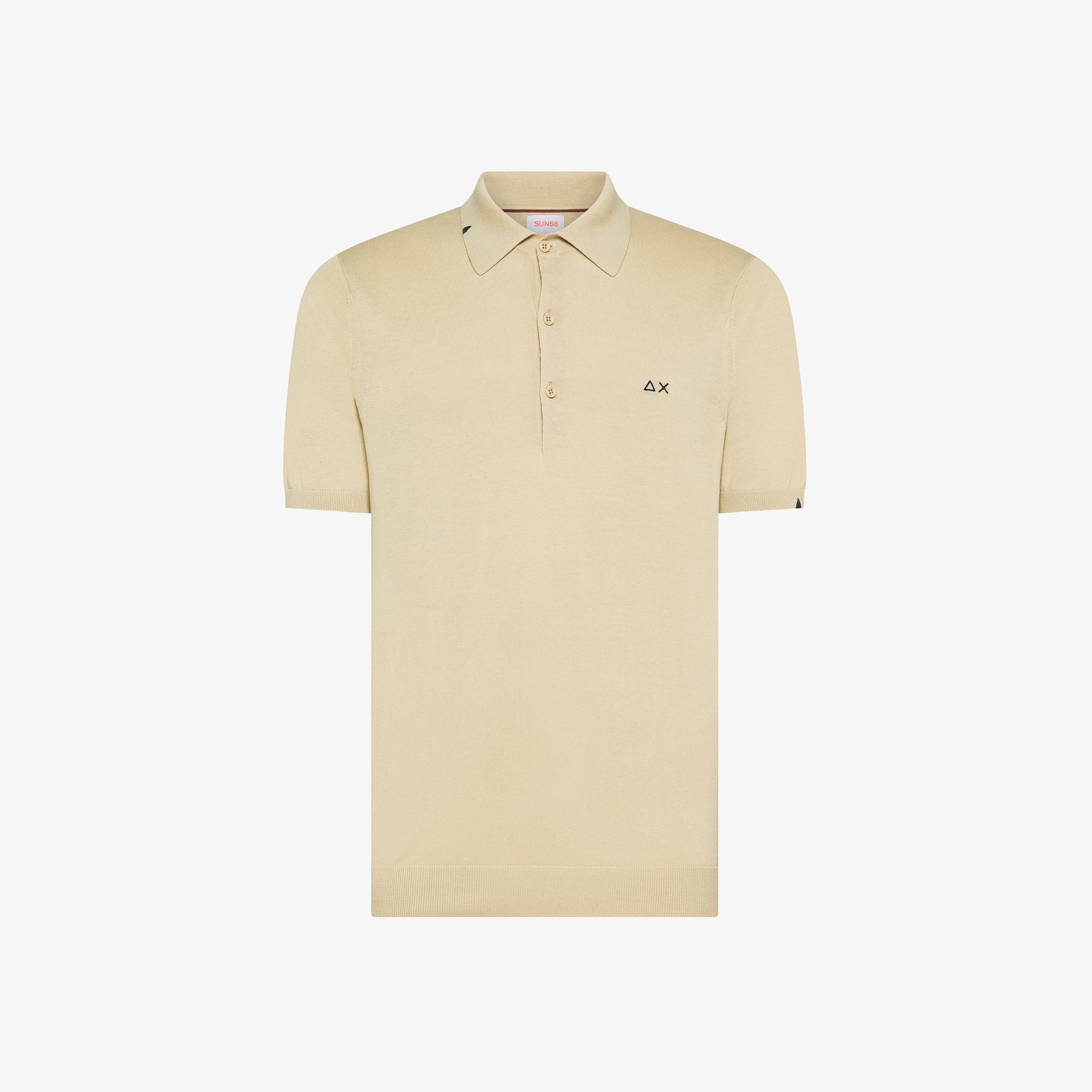 Polo in maglia di cotone Ricamo a contrasto sul collo e sulla manica Maniche corte Bordi a costine Chiusura con bottoni Logo SUN68 ricamato sul petto