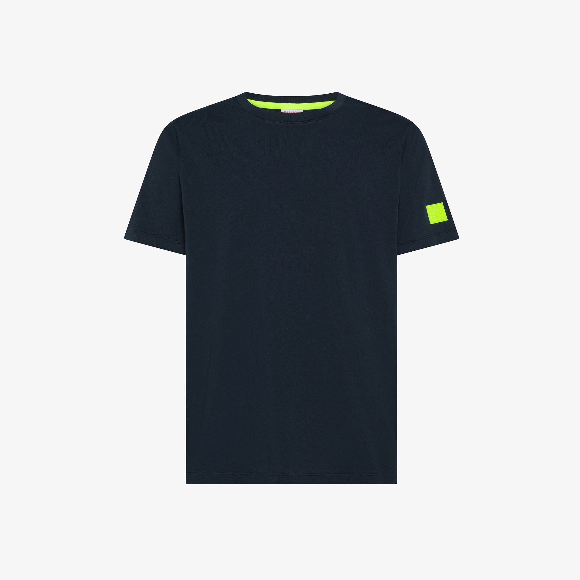 T-shirt in jersey di cotone Girocollo Maniche corte Patch fluo SUN68 ricamata sulla manica