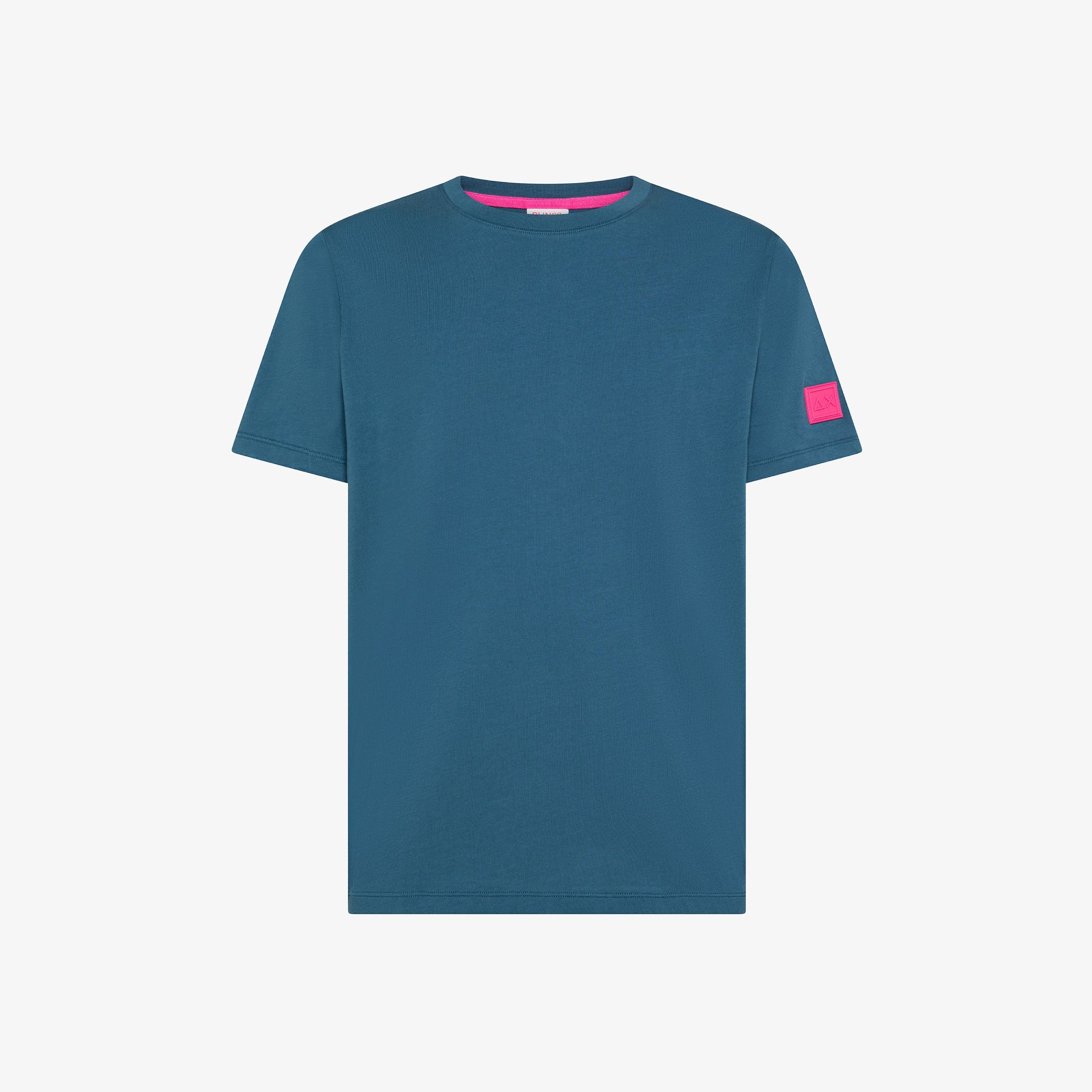 T-shirt in jersey di cotone Girocollo Maniche corte Patch fluo SUN68 ricamata sulla manica