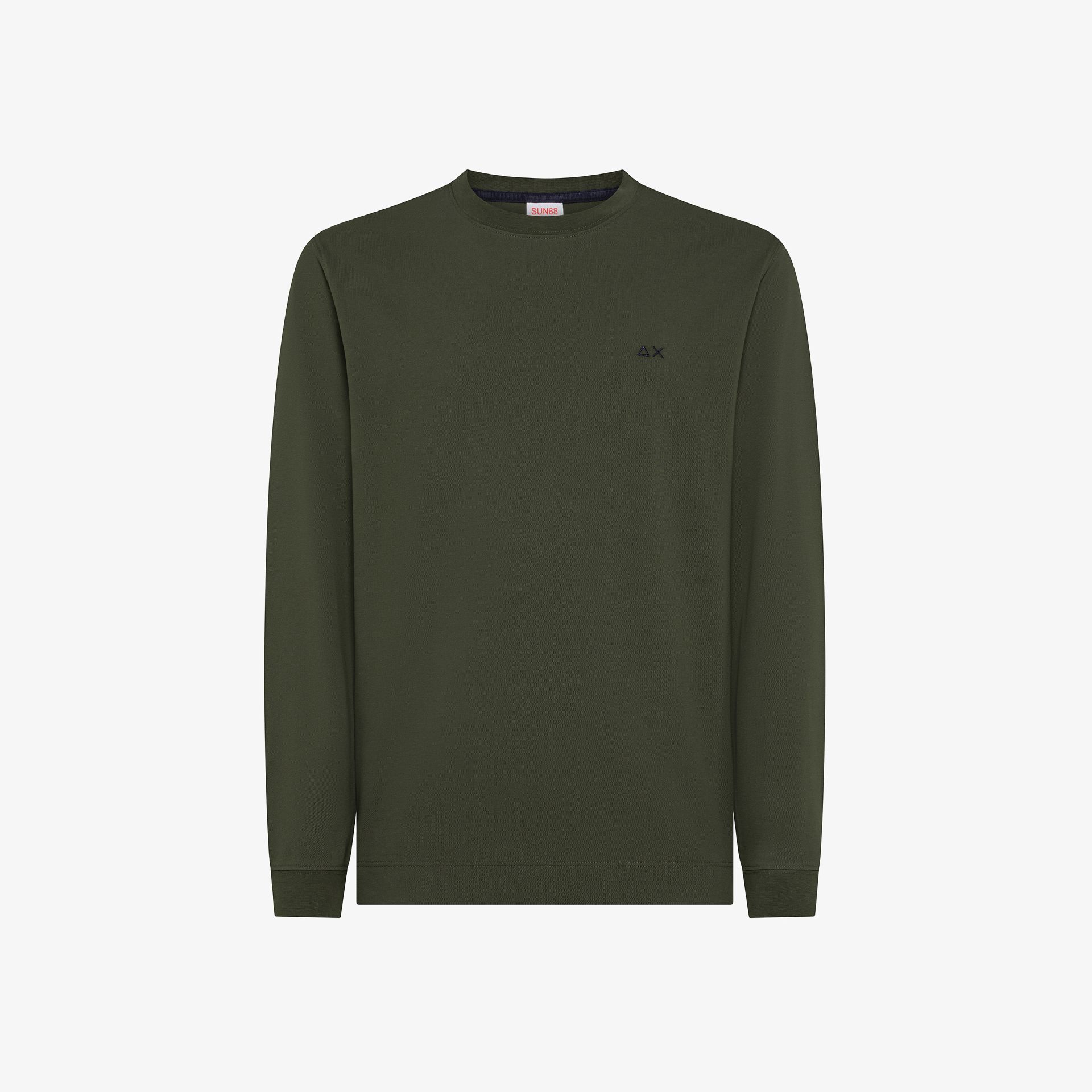 T-shirt in piquet di cotone stretch Girocollo Maniche lunghe Logo SUN68 ricamato sul petto
