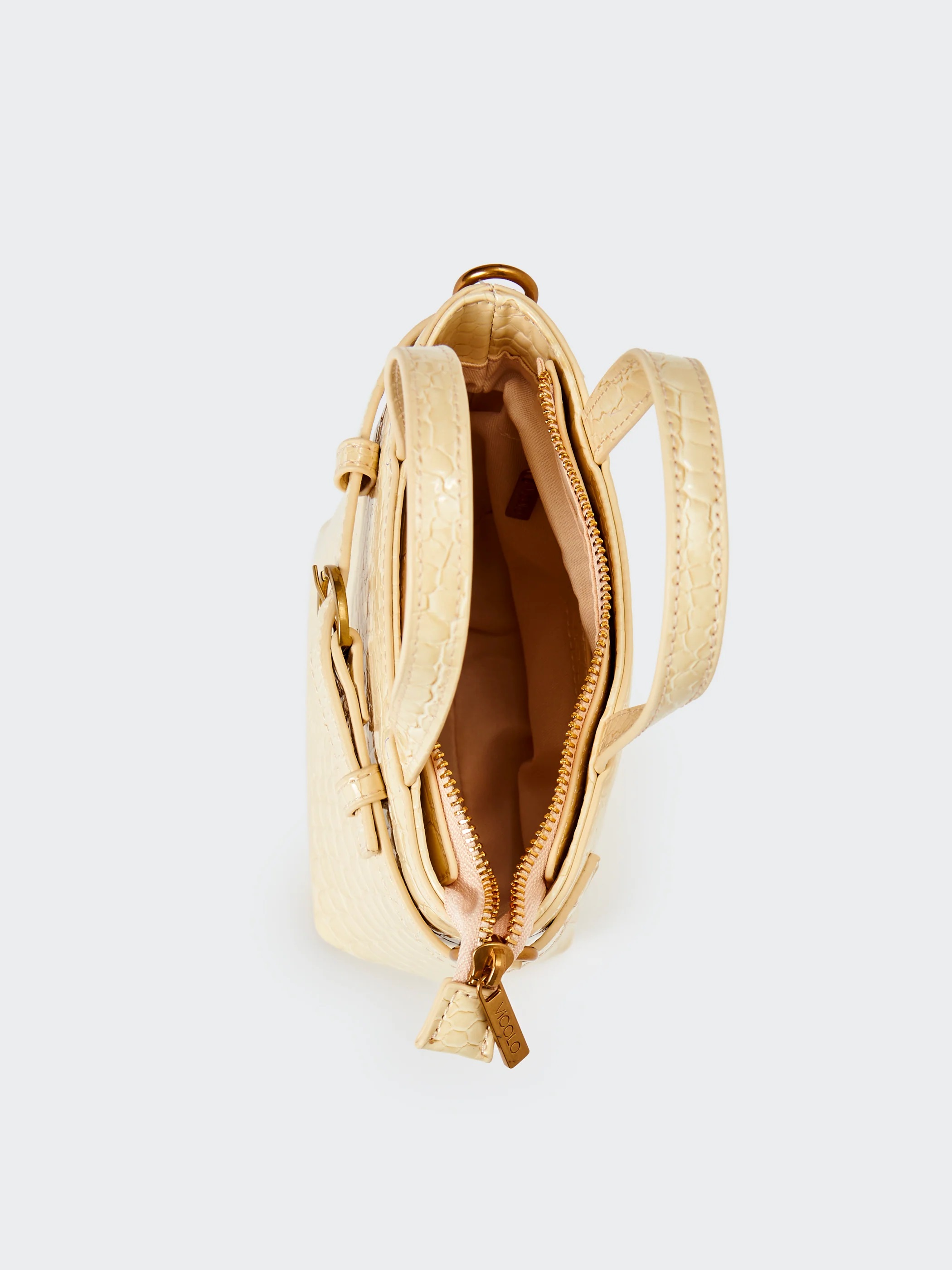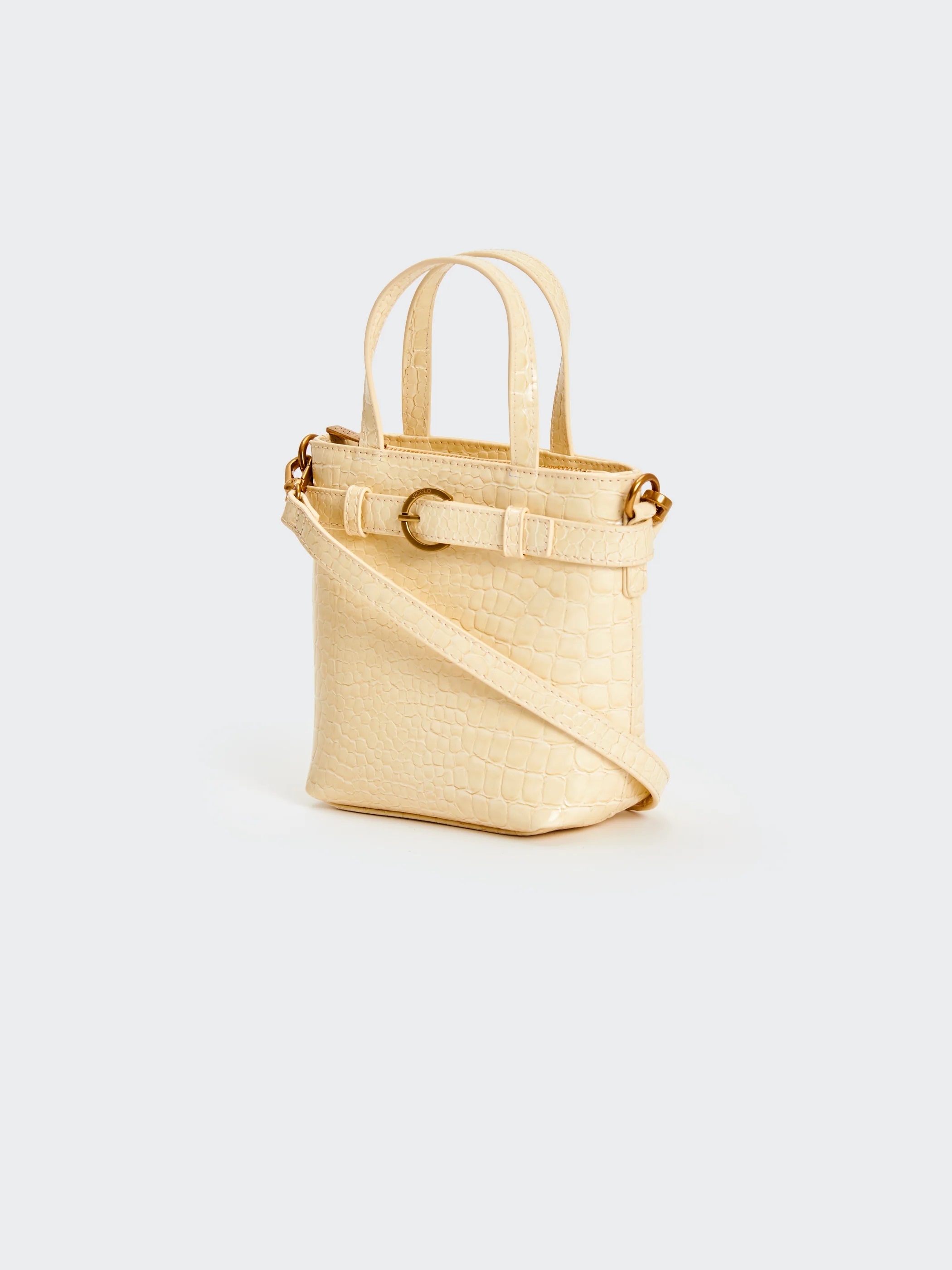 Borsa Beltie Bucket a tracolla in ecopelle effetto "coco" in vernice. Con tracolla in ecopelle "coco" removibile con moschettoni. Chiusura con cerniera. Dettaglio cintura passante sul profilo della borsa. Finiture anticate color oro. Tasca interna con cerniera e taschina piatta.