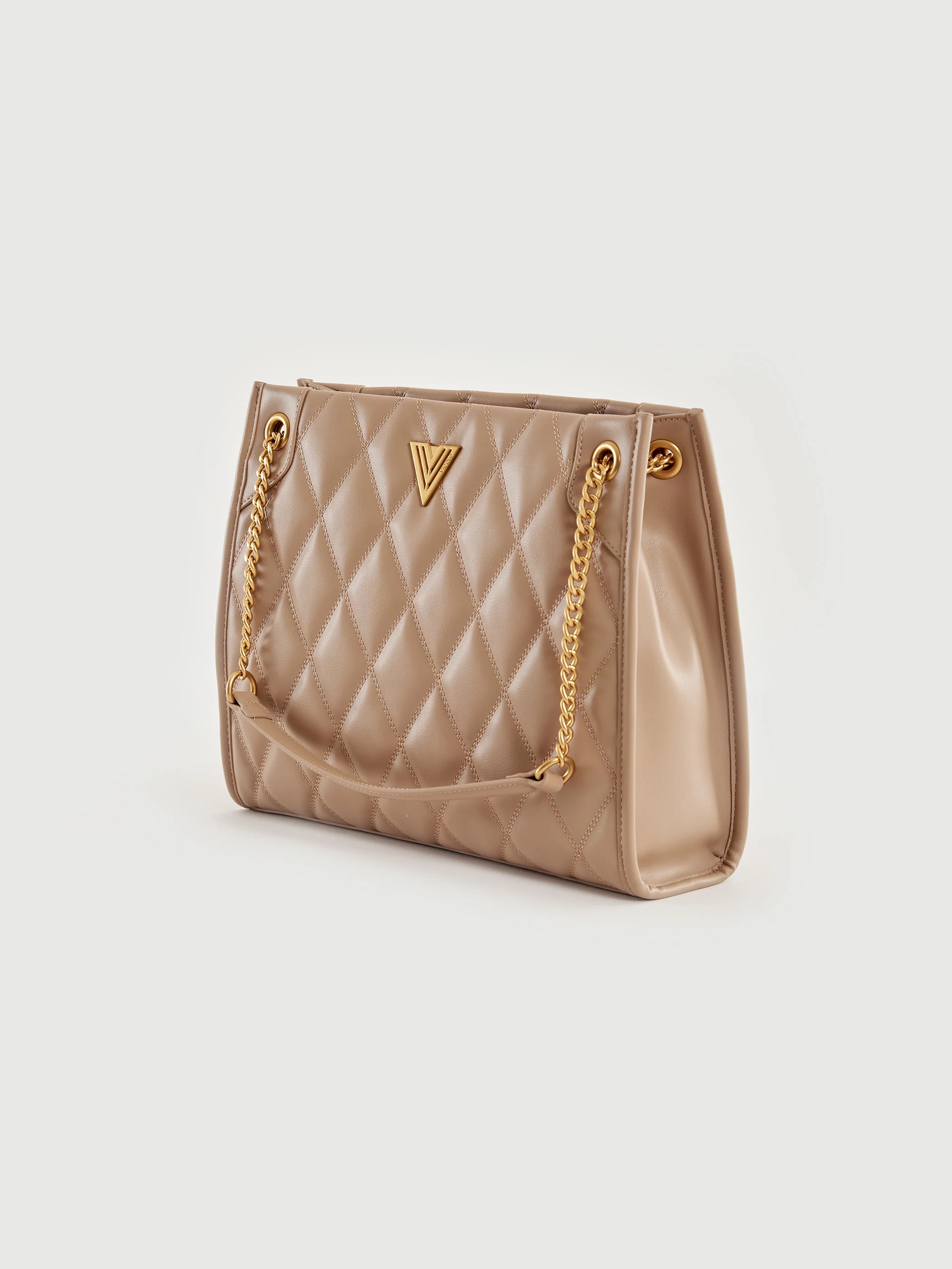 Borsa L'École a spalla in ecopelle trapuntata. Chiusura a pattina interna con bottone a pressione con calamita.. Dettaglio logo metal plate Vicolo con finiture anticate color oro. Tasca interna con cerniera e taschina piatta interna. Dettaglio manici con catena e manicotto in similpelle.