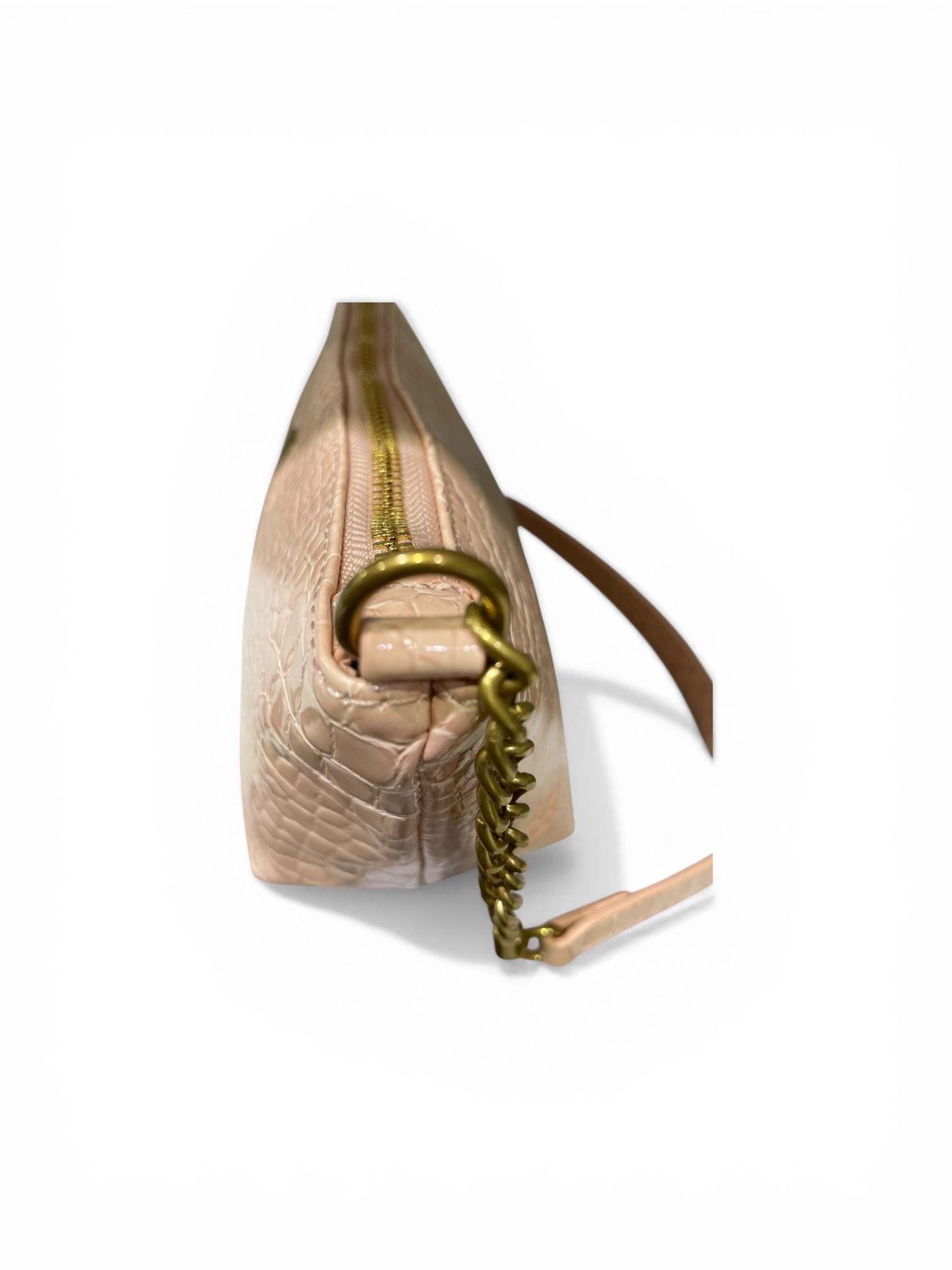 Borsa Nina a spalla in ecopelle effetto "coco". Con tracolla con catena e manico in ecopelle effetto "coco". Chiusura con cerniera. Dettaglio fibbia V metal plate Vicolo. Dettaglio finiture anticate color oro. Tasca interna con cerniera e taschina piatta.