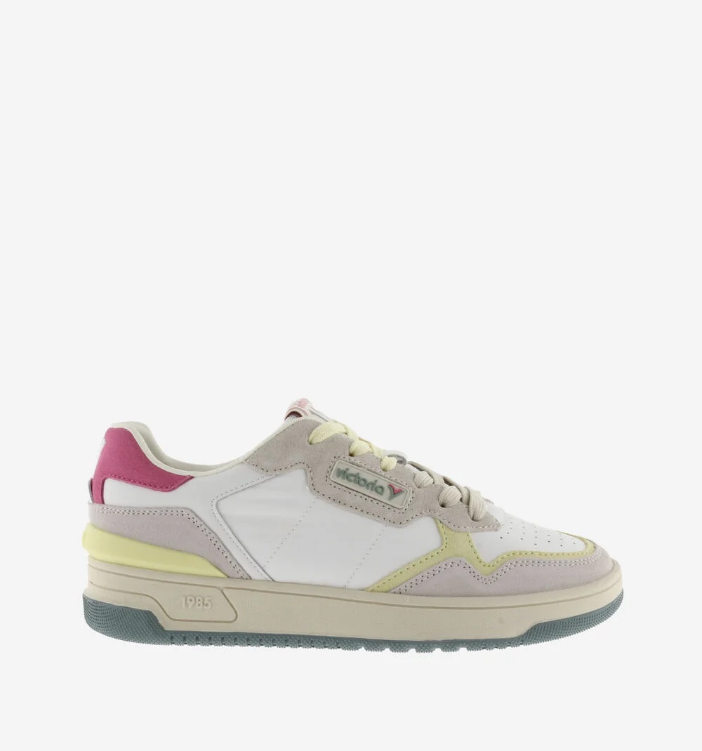 Scarpe sportive unisex realizzate in pelle con dettagli in nylon. Logo anni '80 di victoria incorniciato sul lato. Chiusura con doppio laccio. Comoda suola bicolore in gomma con stabilizzatore sul tallone. Include anche una soletta ergonomica che si adatta alla forma del piede, garantendo una sensazione di comfort.