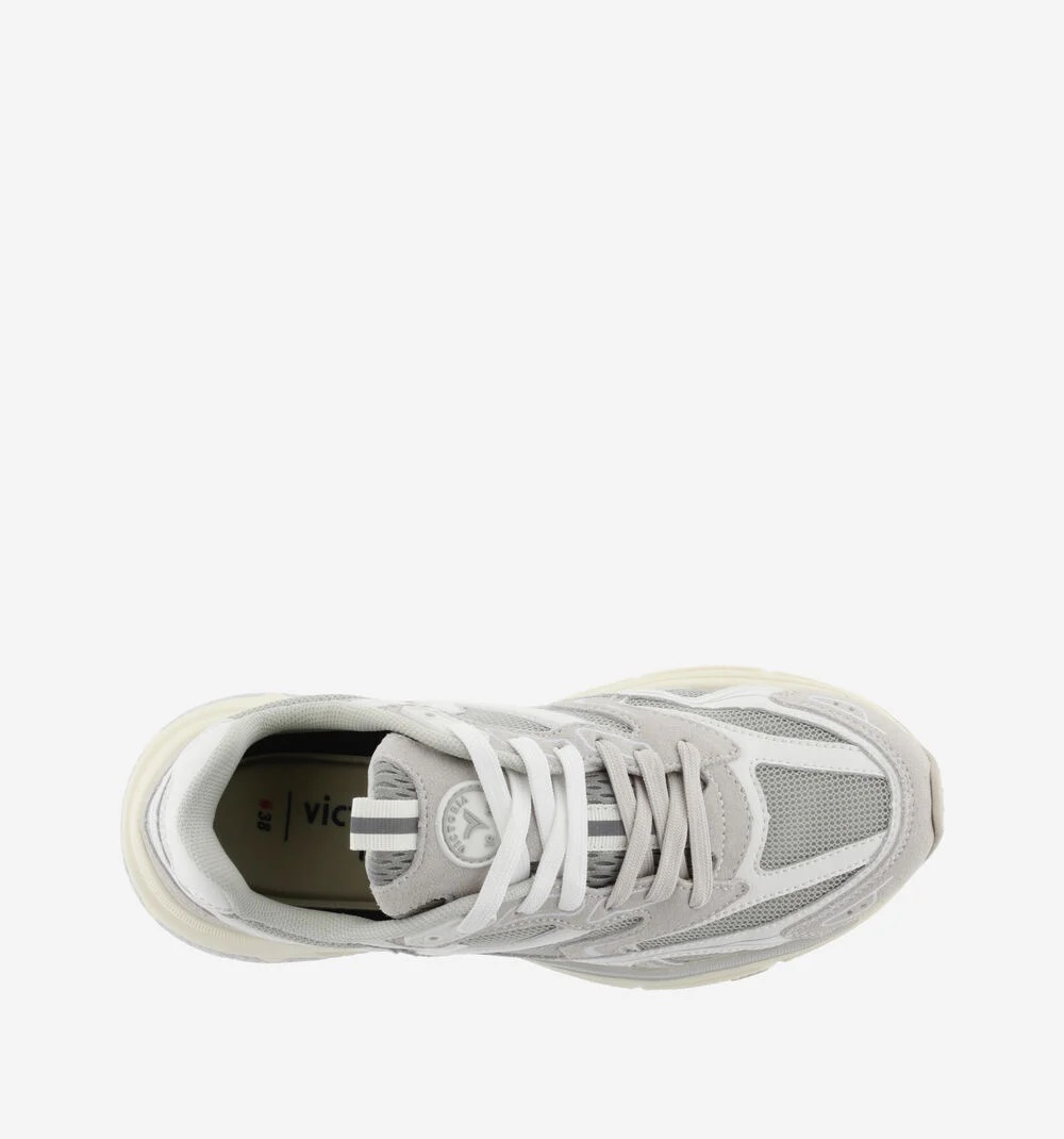Scarpe sportive da donna realizzate in tessuto a rete con sovrapposizioni in pelle e dettagli in PU. Chiusura con doppio paio di lacci. Suola in phylon con battistrada dentellato in gomma e stabilizzatore nel tallone. Include inoltre una soletta ergonomica che si adatta alla forma del piede, offrendo una sensazione di comfort.