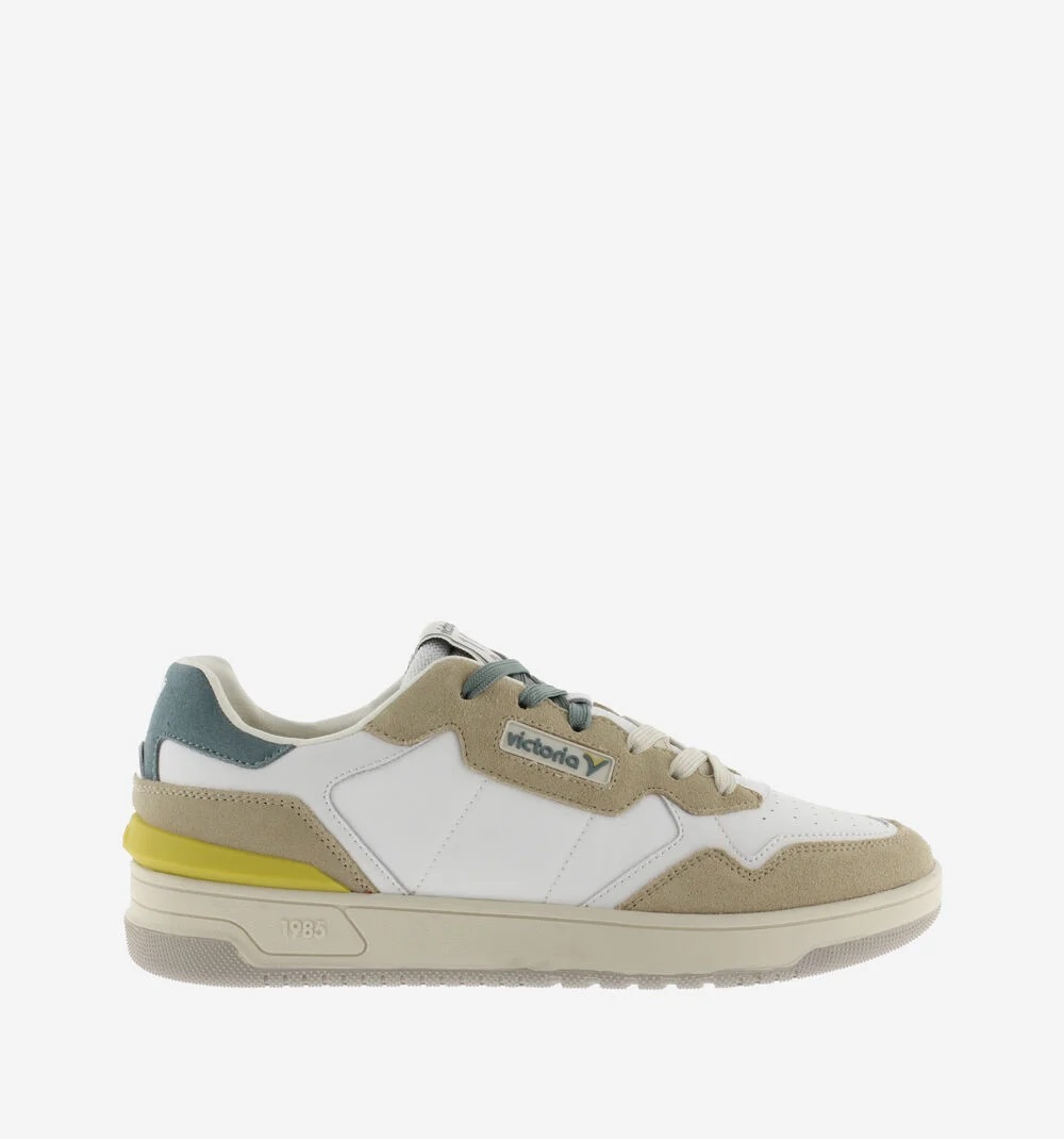 Scarpe sportive unisex realizzate in pelle con dettagli in nylon. Logo anni '80 di victoria incorniciato sul lato. Chiusura con doppio laccio. Comoda suola bicolore in gomma con stabilizzatore sul tallone. Include anche una soletta ergonomica che si adatta alla forma del piede, garantendo una sensazione di comfort.
