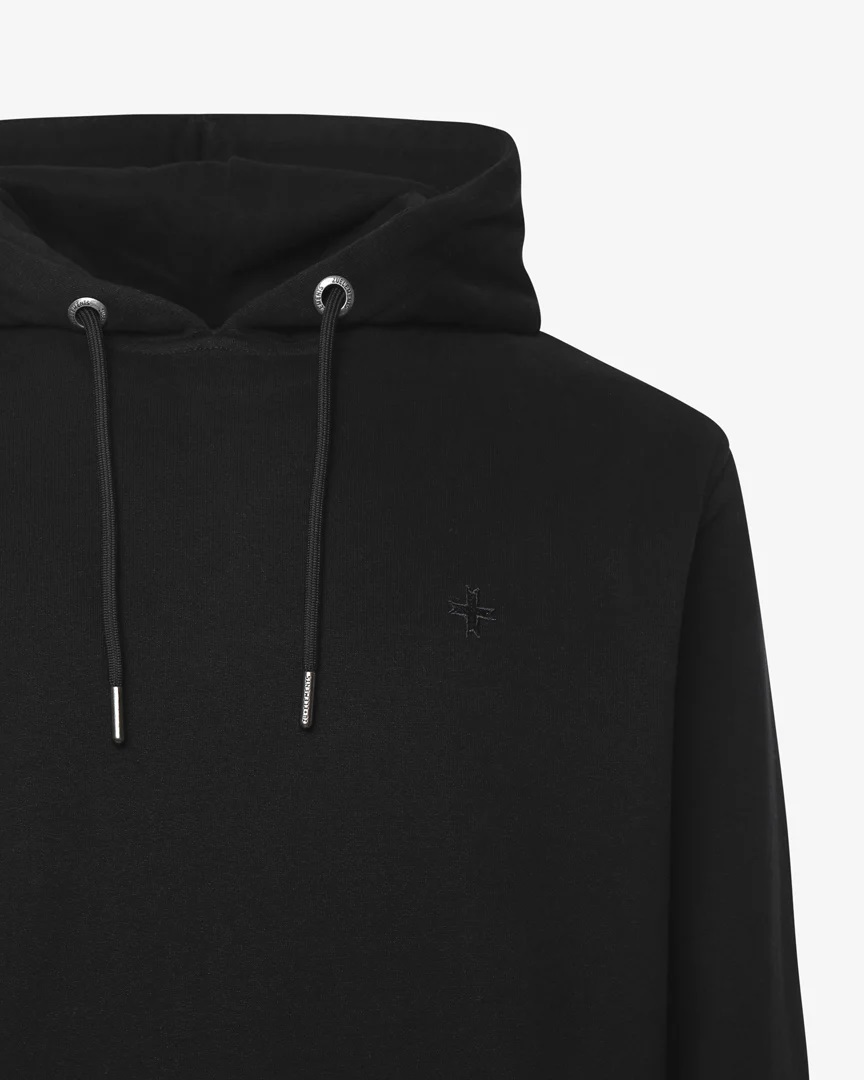 Felpa con cappuccio in 100% cotone Carbon brushed con micrologo ricamato in tono sul davanti.