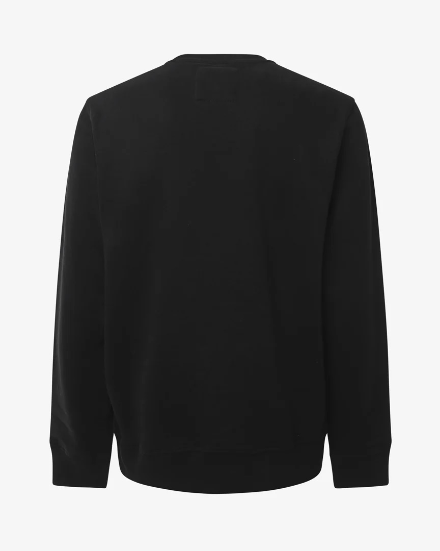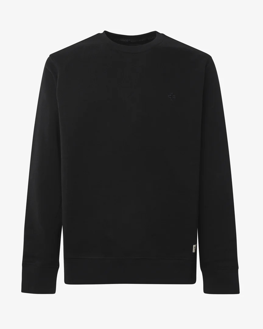 Felpa girocollo con micrologo ricamato sul davanti. Fondo e polsini a coste. 100% Cotone carbon brushed.
