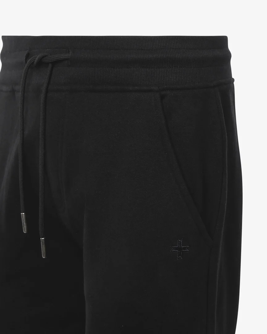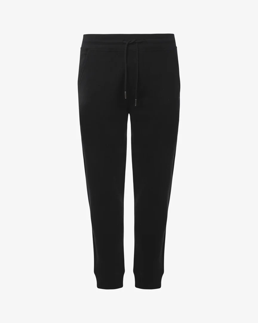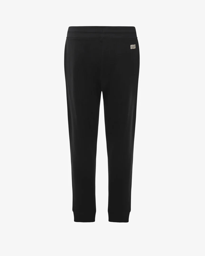 Pantaloni in felpa con micrologo ricamato sulla gamba. Vita e fondo a coste. 100% Cotone carbon brushed.